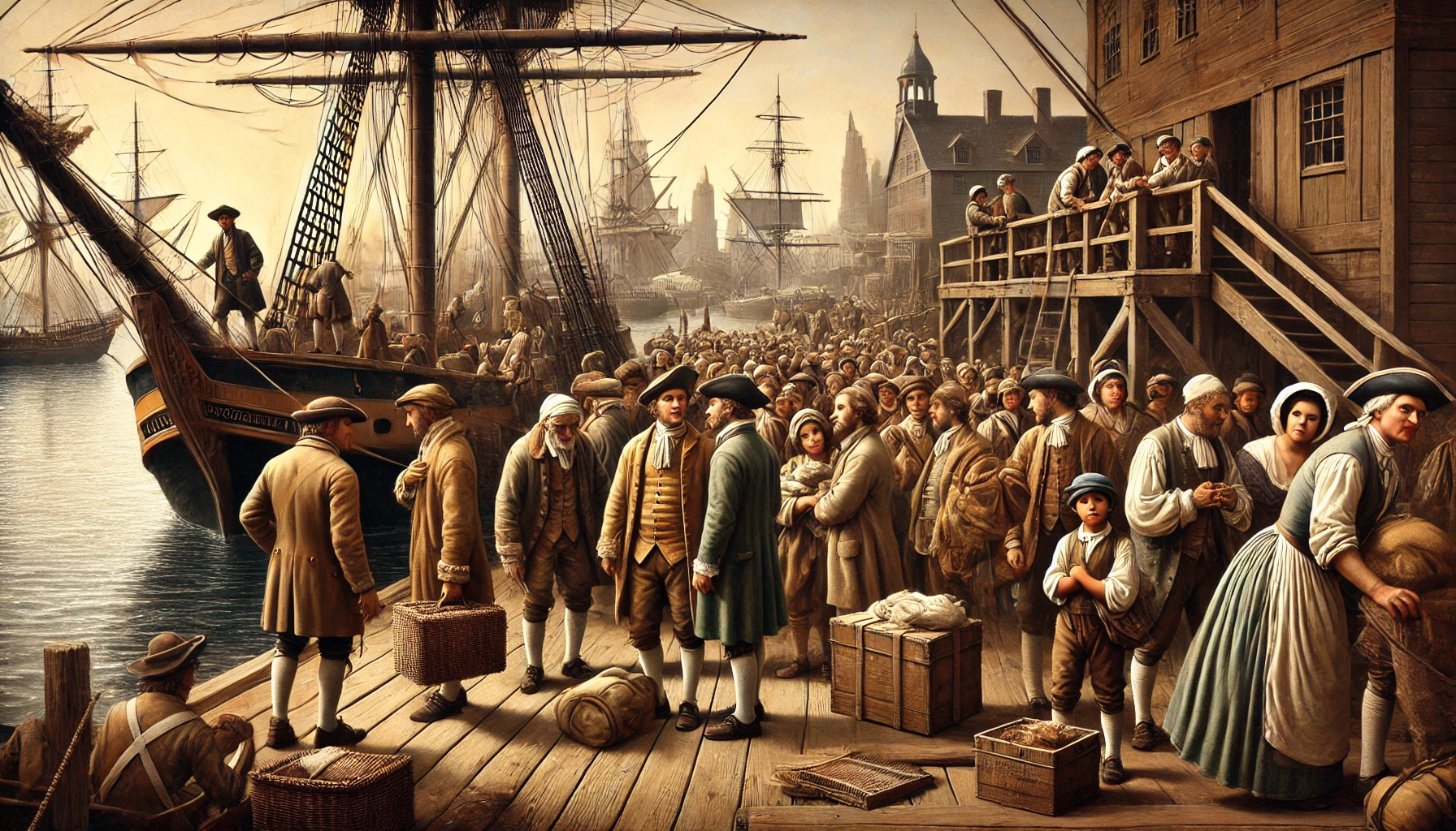 2- Indentured servants arriving from Europe in New York Harbor